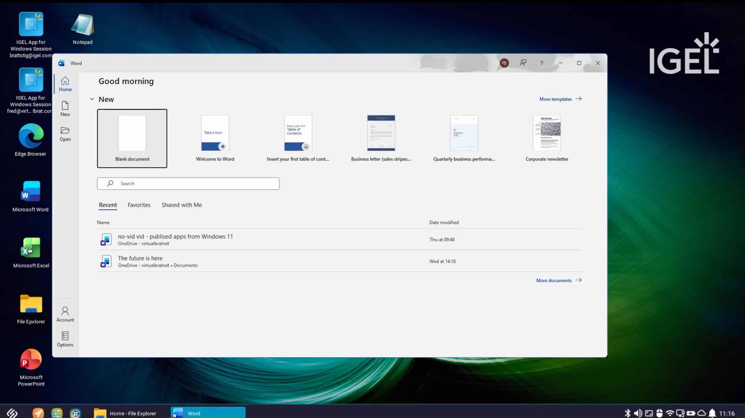 - Shortcuts to all apps, including Windows IMH Published Apps, are available on the IGEL OS desktop