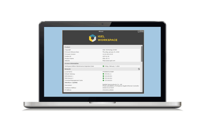 Die Kernkomponenten der Workspace Edition sind das Next-Gen Edge OS für Cloud Workspaces, das IGEL OS sowie die Universal Management Suite-Software. Sie verfügt damit über alle wesentlichen Funktionen für sicheren und schnellen Zugriff auf virtuelle Desktops und Cloud Workspaces.